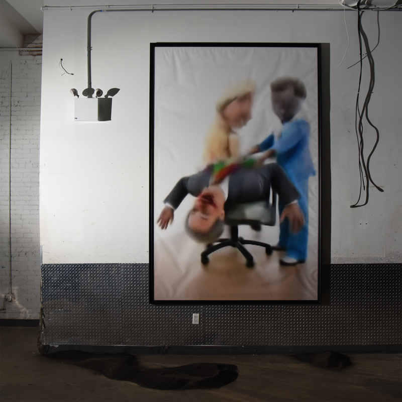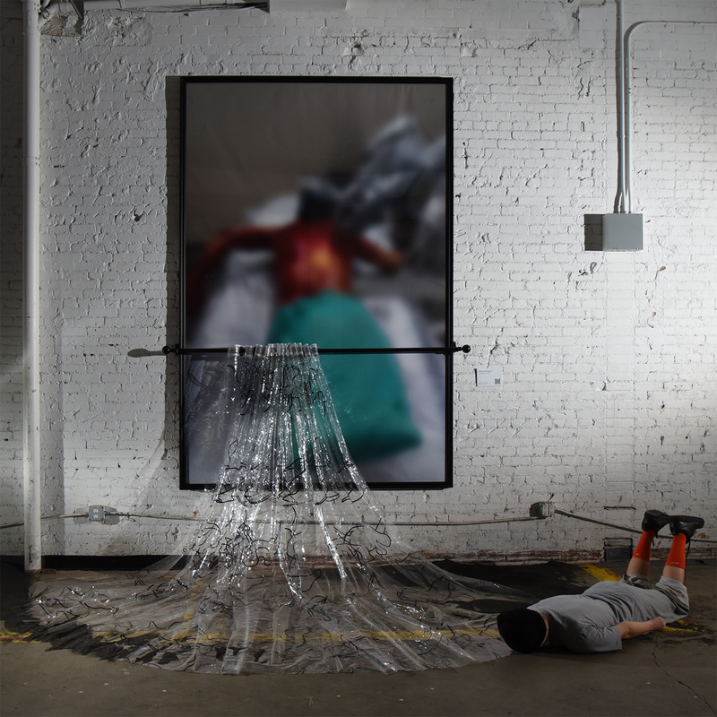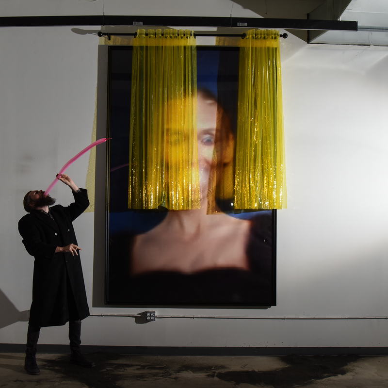 Transparent Thermoplastic Polyurethane Pleated Sheets, Semi-Gloss Acrylic Paint on Wood, Steel Roman Pole, 12-Color Inkjet Print on Canvas